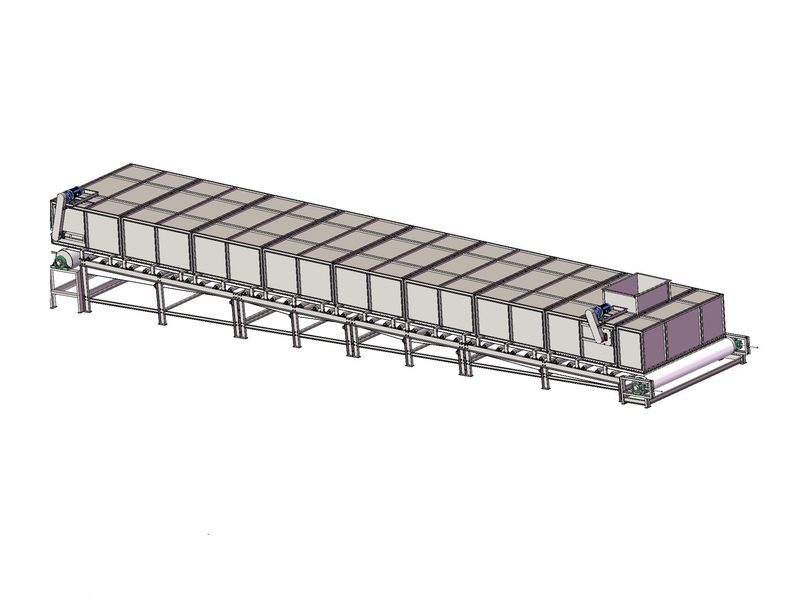 通過倉體下面的托輥和輸送網(wǎng)帶,載著一定堆積高度的物料以平流的方式向前移動,通過計算倉體長度,在預(yù)定的時間點(diǎn)準(zhǔn)時出料,使原料與化學(xué)藥劑在特定環(huán)境下進(jìn)行充分反應(yīng)。